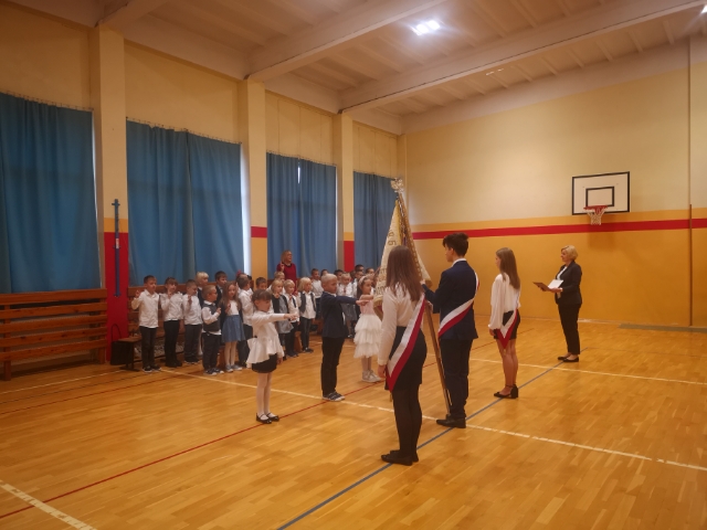 Jednym z najważniejszych wydarzeń w życiu uczniów klas 1 jest wyjątkowa uroczystość, czyli Pasowanie na Ucznia, które zorganizowano w dniu 14.10.2021. Podczas ceremonii odbyły się zawody sportowe, podpisywanie aktu obietnicy pierwszoklasisty oraz śpiewanie piosenki. Uczniowie klas 1 złożyli uroczyste ślubowanie w obecności Dyrekcji Szkoły oraz zostali pasowani na ucznia przez Panią Dyrektor Marzenę Mieszko. Gratulujemy Pierwszoklasistom i życzymy sukcesów :)