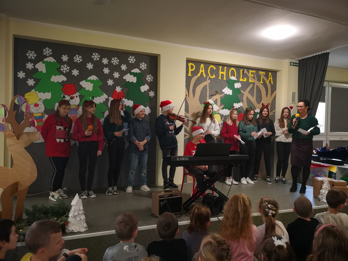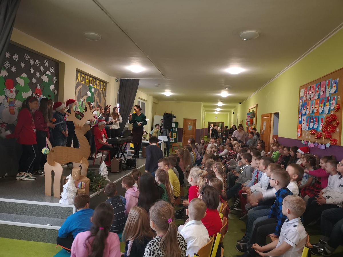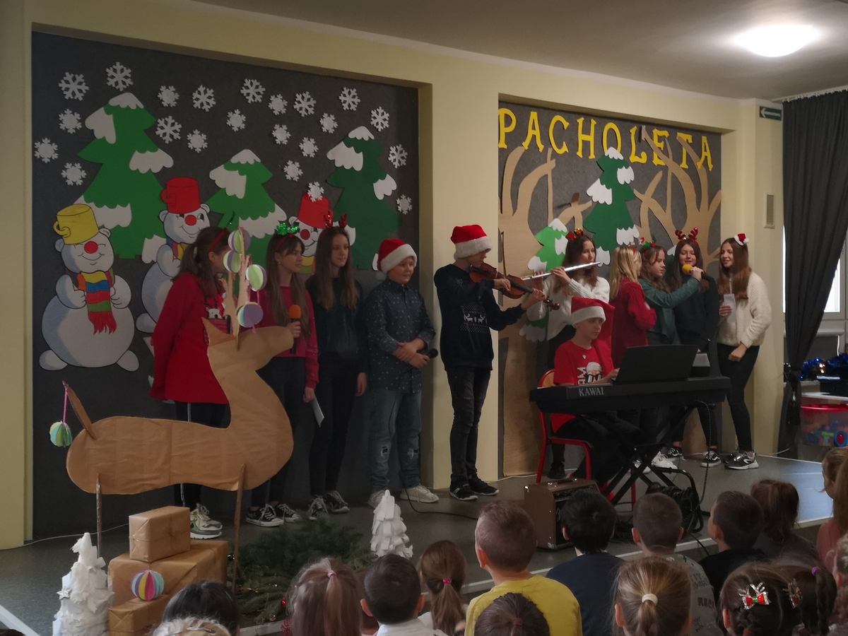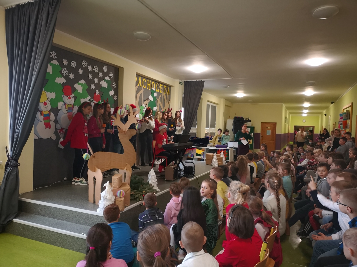 Nasza szkoła kultywuje tradycje i uczy szacunku do historii. W związku z tym obchodzone są różnego rodzaju zwyczaje, w tym te związane ze Świętami Bożego Narodzenia. W tym roku szkolnym w dniu 17.12.2021 przygotowano uroczysty Koncert świąteczny w wykonaniu uczniów klasy 7a pod kierunkiem Pani Jolanty Gromadzik.
